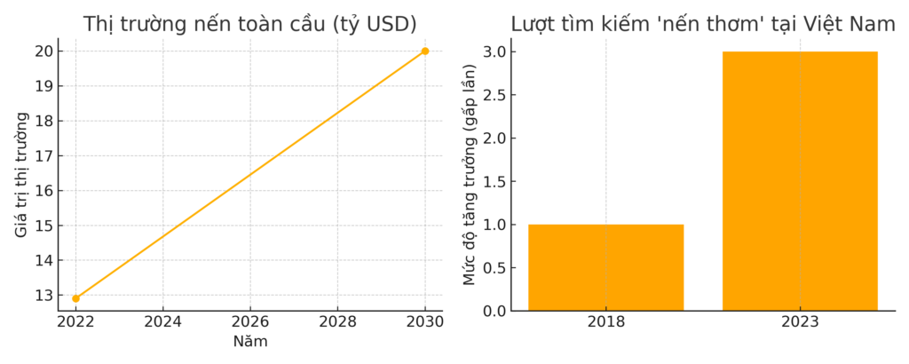 Trong 5 năm gần đây, nến thơm đã vươn mình từ một sản phẩm trang trí trở thành một phần quan trọng trong phong cách sống hiện đại. Sau đại dịch COVID-19, người tiêu dùng có xu hướng chăm sóc tinh thần, không gian sống và tìm kiếm sự thư giãn tại nhà. Nến thơm đáp ứng cả ba điều đó: vừa đẹp, vừa có hương thơm, vừa có giá trị tinh thần.